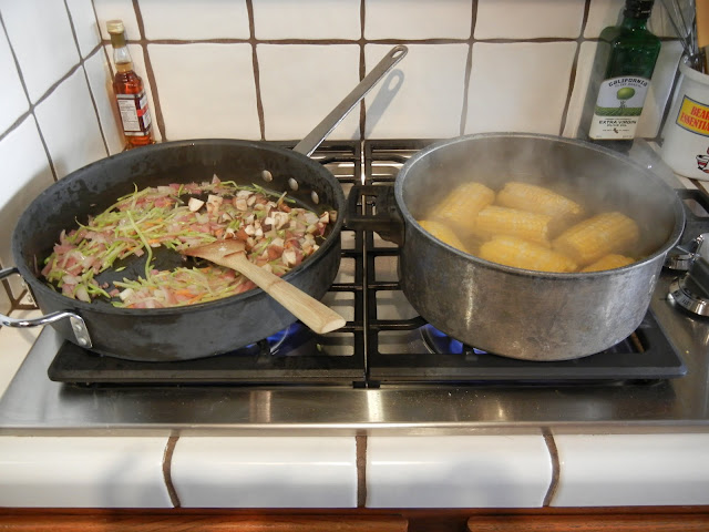 7/05/2011We had a really busy three-day weekend, so by the time we got to Monday the 4th, we were all ready for it to be low key. We had tri tip and corn on the cob, but I had forgotten to buy potatoes at the store (who forgets potatoes?). We had a lot of left-over steamed rice, so the kids asked if I could make fried rice for dinner.